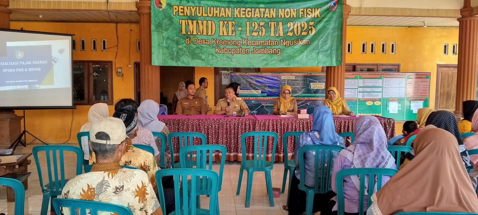 Bapak Hartono, selaku Kabid Bapenda Kabupaten Jombang, bertindak sebagai pemateri utama. Beliau menyampaikan materi tentang jenis-jenis pajak daerah, kewajiban membayar pajak, serta sanksi bagi wajib pajak yang menunggak. Kepala Desa Kromong, Bapak Hermawan, turut hadir dan memberikan sambutan pembuka.
