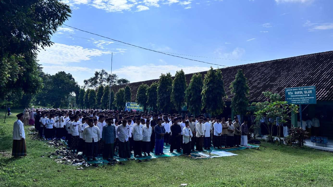 Mitrajustice.id – Jombang – Embun pagi masih menempel di rumput lapangan depan Asrama Rusunawa Pondok Pesantren Darul Ulum Kepuhdoko, Tembelang, Jombang, ketika puluhan santri mulai berdatangan. Jumat, 5 Desember 2025, menjadi hari yang tak biasa bagi mereka. Di bawah naungan langit yang tampak teduh namun berat, para santri dari berbagai jenjang MI, MTs, SMK, hingga MAN 9 Jombang berkumpul dengan wajah yang lebih serius dari biasanya.