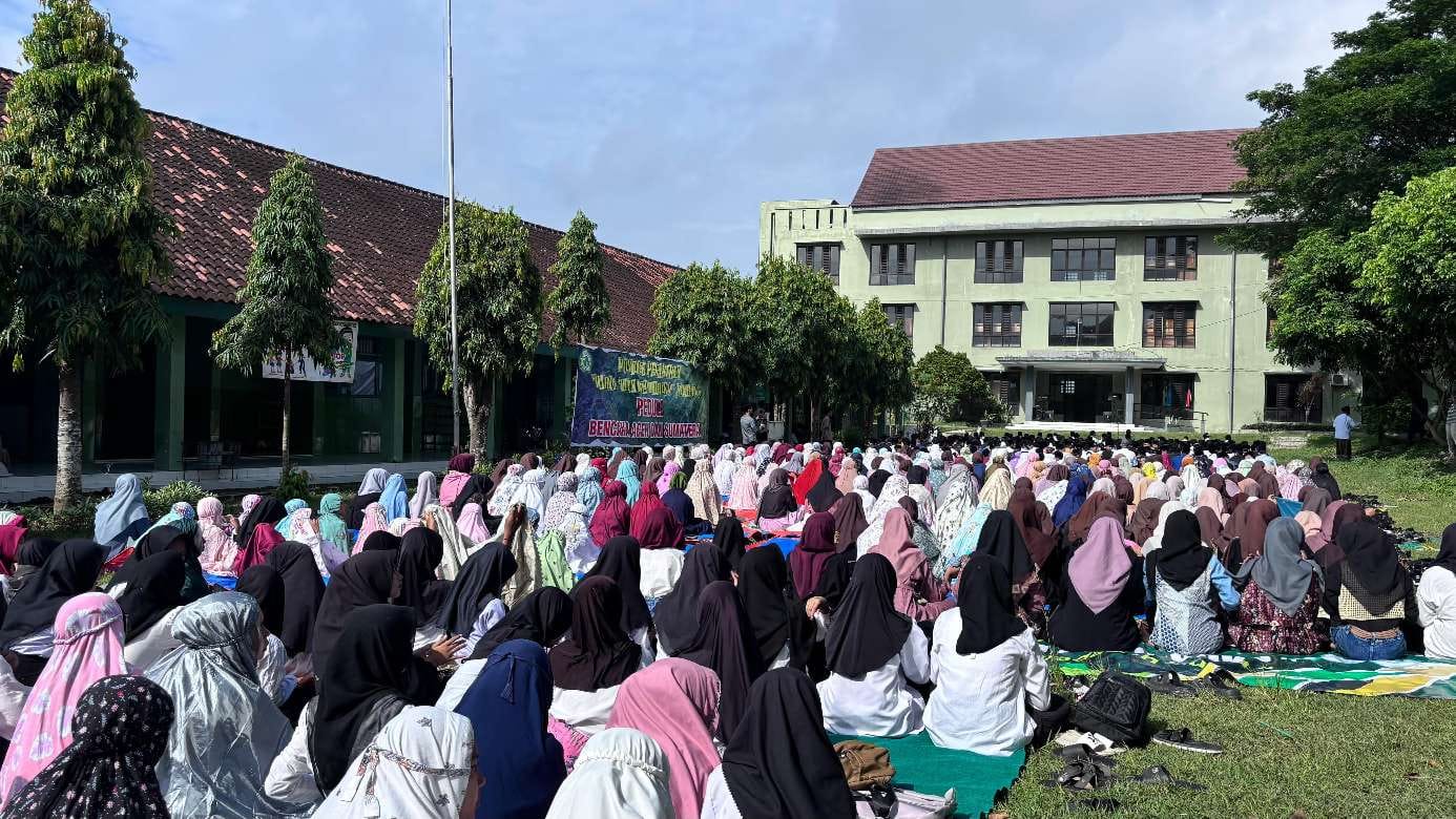Penjelasan itu mengalir bersama angin pagi, menyiapkan hati para santri yang tampak khusyuk, terlihat sholat pun dimulai “Allāhu Akbar.” Takbir pertama terdengar serempak, bergema memantul di dinding dan pepohonan sekitar Rusunawa. Ratusan tangan yang terangkat, kemudian bersedekap rapi di dada, membentuk pemandangan yang menggetarkan bagi siapa pun yang menyaksikan.